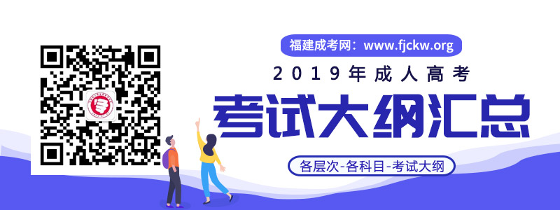 【導語】成人高考考試大綱應是每一位考生在考試前一兩個都應查看的,除了了解考試內容,還可以通過大綱要求了解各題型的分值情況。由此,福建成考網整理出2019年成人高考高起點和專升本的考試大綱(逐漸補充),建議大家收藏后仔細閱讀,有任何問題都可掃描二維碼聯系后臺人員進行修正。