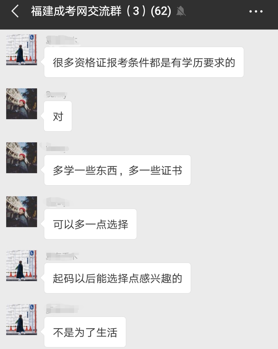 從考生們的交流中,我們可以發現,大家報考成考都是有原因的: